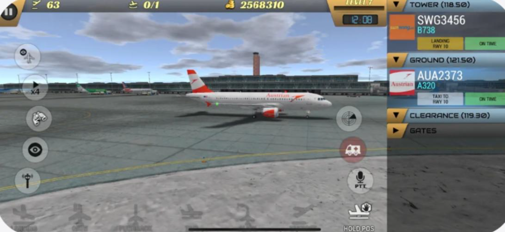 والإقلاع بأمان ، مع تجنب أي تصادم بينها. اللعبة تمنحك تجربة واقعية لمحاكاة العمليات اليومية في مطار مزدحم، لكنها